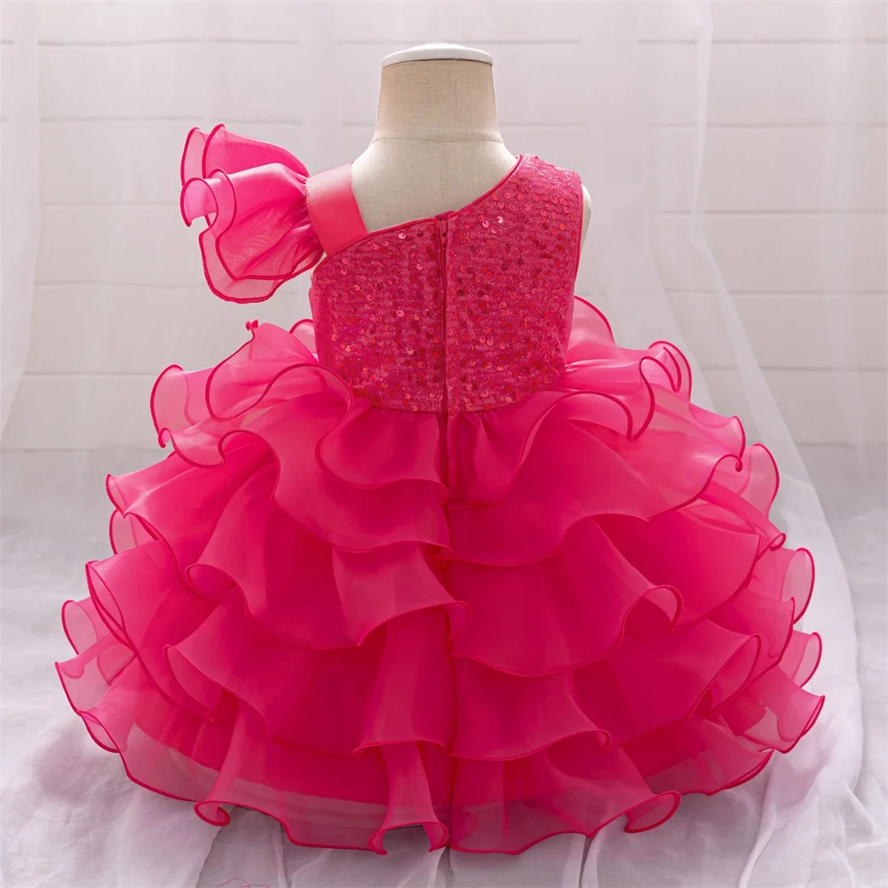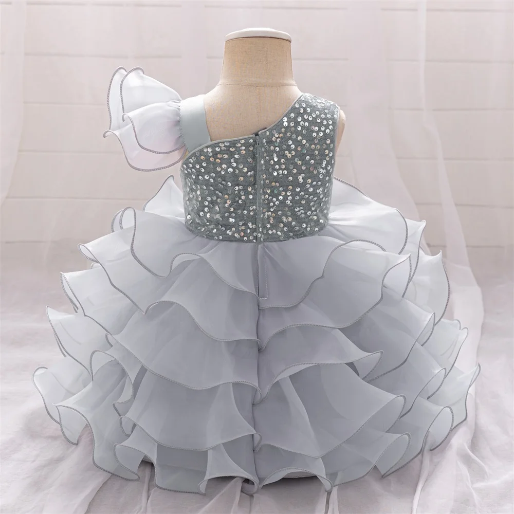 Flower Girls Wedding Bridesmaid Party Dress Kids Sequin Princess Gown For Baby Toddler 1st Birthday Bow Clothes Evening Costumes