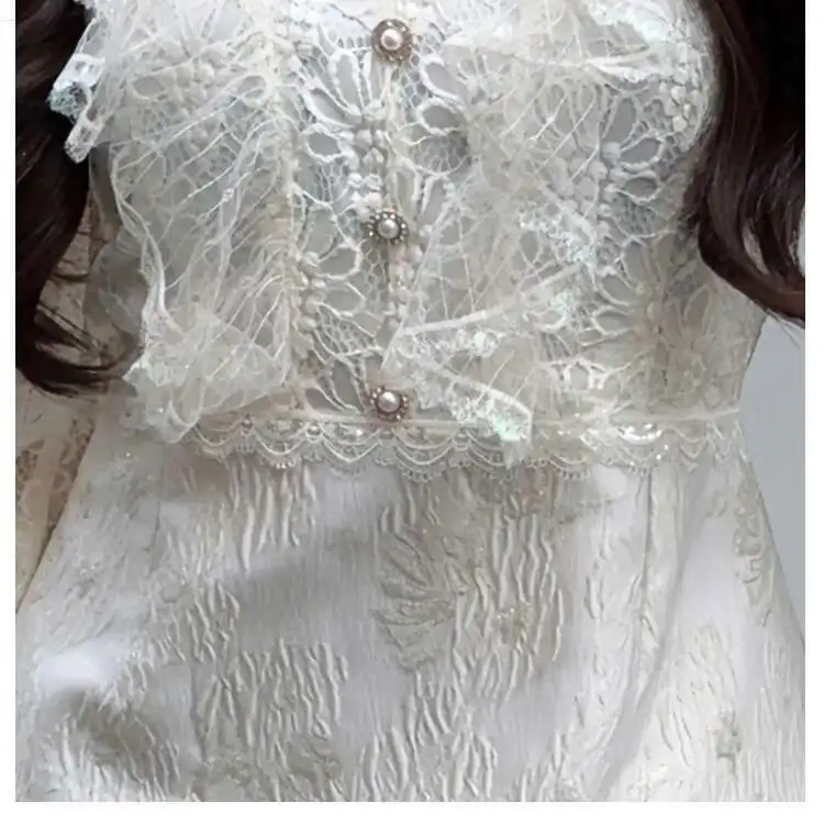 UCXQ White Women's Dress Elegant Style V Neck Long Lace Sleeves Ruffled Cuffs Embroidered Dresses Female 2025 Summer New 23C3493